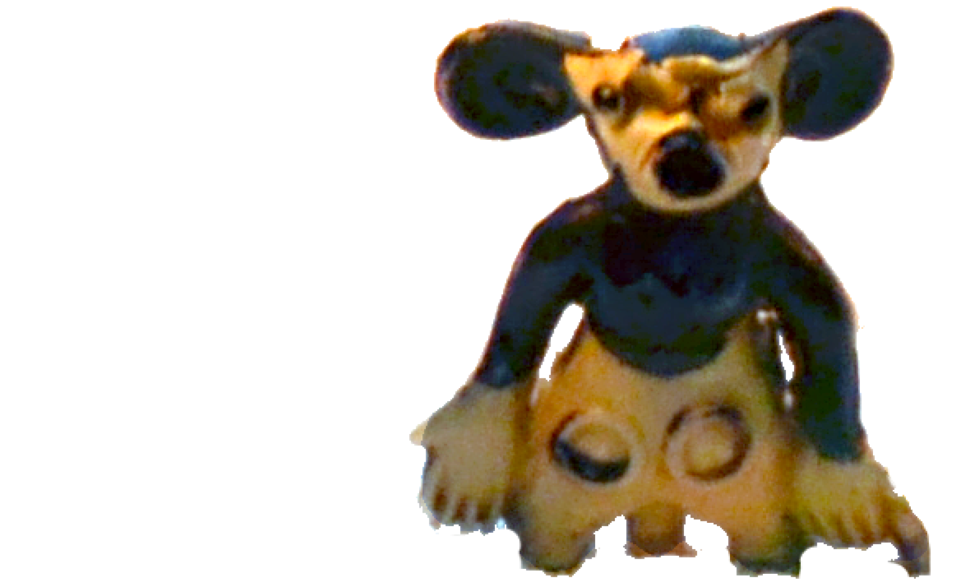 Age had tended to catch up with Mickey. Somehow some time ago his nose had pushed in and also the soles of his boots had worn through, admitting icing sugar and cake mix to cause health troubles with his hollow legs. No matter, his notoriety and popularity far exceeded those poor looks (Gran has been heard to say ‘Ugly’).